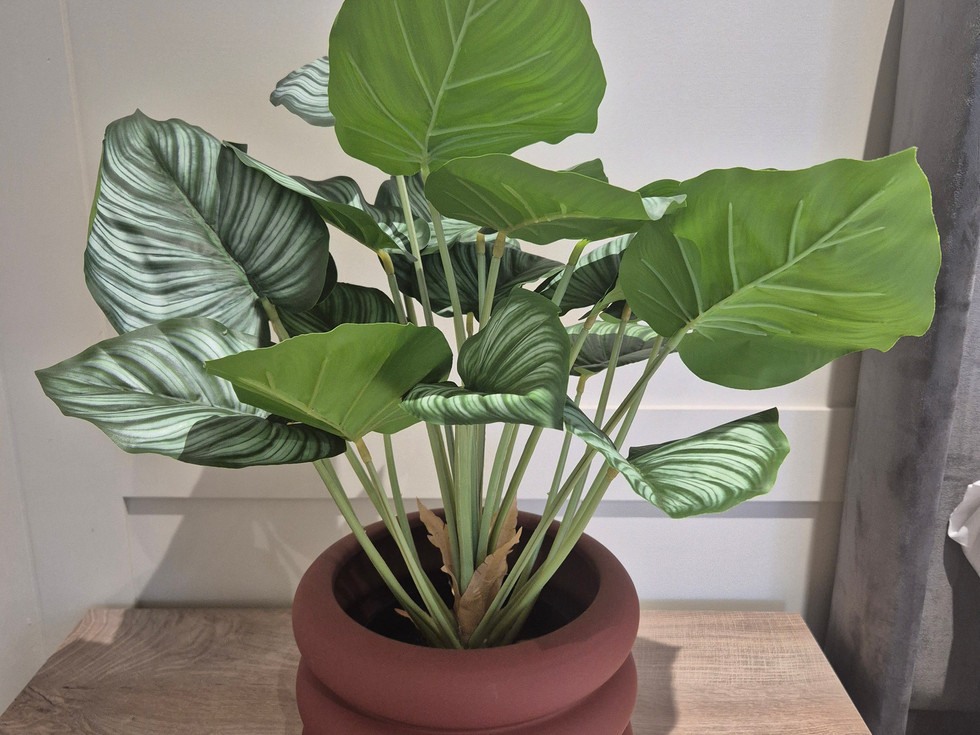 This elegant, rust-hued ceramic pot complements any decor while promoting healthy plant growth with its included saucer for easy drainage.